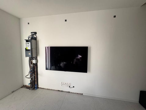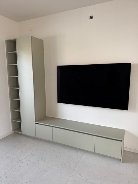 Een TV-kast die ook de nutsvoorzieningen wegwerkt.